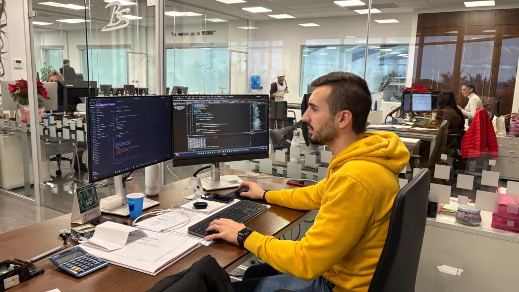 Hoy, Jose Manuel forma parte del departamento informático de Biosabor. De su día a día destaca sobre todo el compañerismo y el buen ambiente del equipo, así como los retos que le plantea la programación, que le motivan a buscar soluciones y aprender cosas nuevas constantemente. Valora el ambiente laboral positivo, el trato cercano y el hecho de sentirse acogido desde el principio gracias a la generosidad especialmente de su responsable, además de la confianza que la empresa ha depositado en él dándole cada vez más responsabilidades. Siente que ha crecido tanto a nivel técnico —programación, resolución de problemas, gestión de tareas y proyectos reales— como a nivel personal, ganando seguridad, madurez y capacidad de comunicación. Que Biosabor apostara por él siendo tan joven ha sido un gran desafio y una muestra de confianza que no todas las empresas ofrecen.